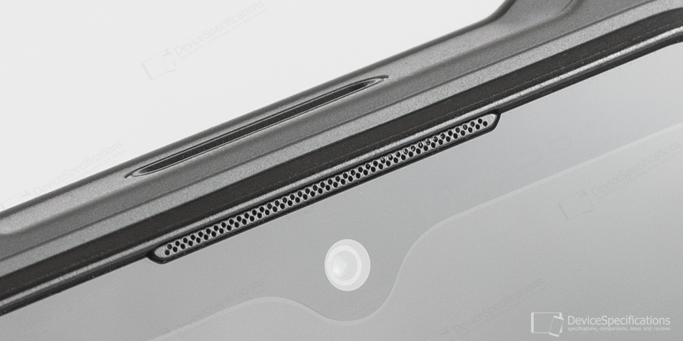 The display occupies the front of the handset and is encapsulated in a hard polycarbonate casing. Its rim protrudes from the glass surface as an additional protection feature. The display has thick bezels - 3 mm side ones, 5 mm for the top, and 8 mm for the bottom. The top bezel has a V-shaped notch for the 16MP front camera. To the right of the notch, the light and proximity sensors are located, followed by the LED notification light. The earpiece is tucked between the glass and the polycarbonate casing. The bottom bezel is bare. You can choose from an on-screen gesture or on-screen navigation bar navigation. Choosing gestures is suitable in case you need more screen estate. Both variants are customizable.