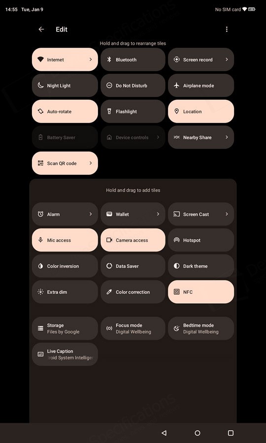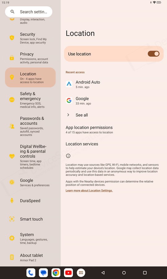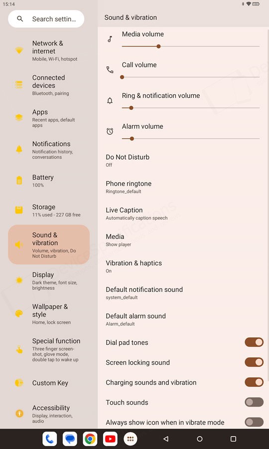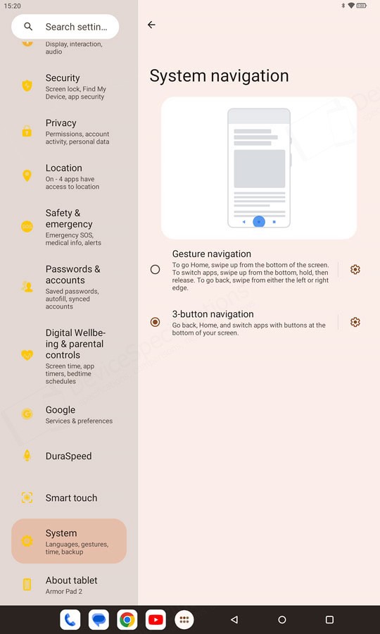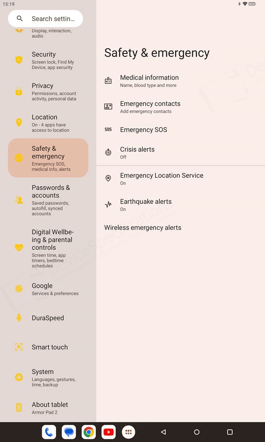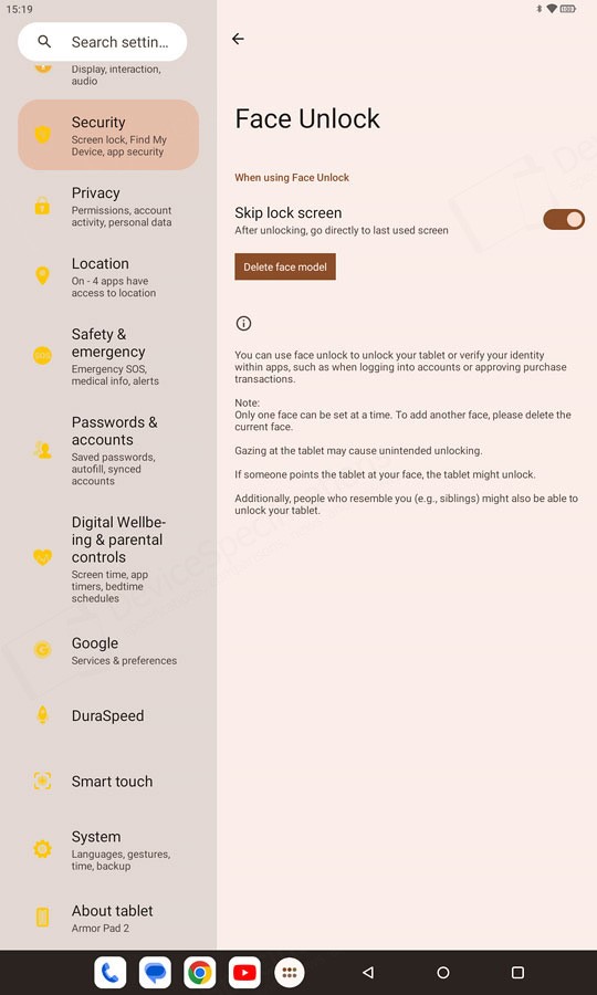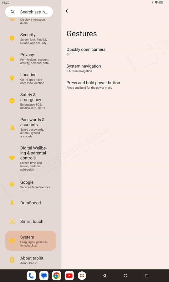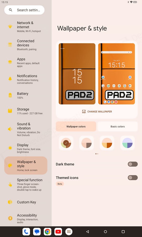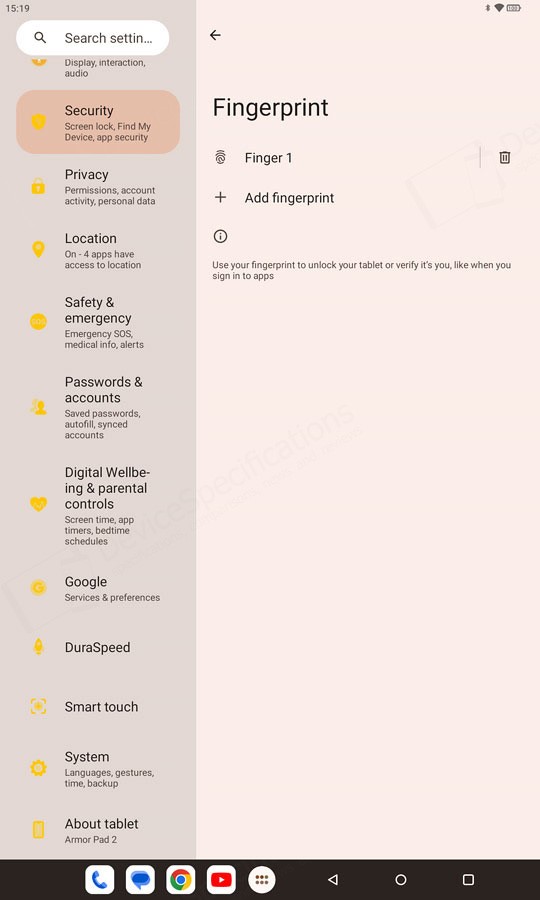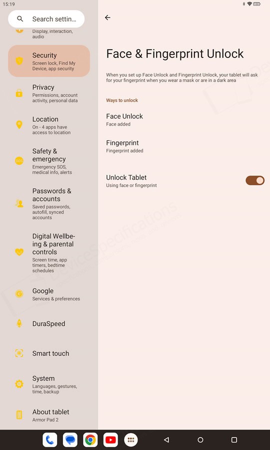 Ulefone Armor Pad 2 runs on stock Android 13 and some UI elements reflect the fact that this is a big-screen tablet and a re-designed accordingly. The Lock Screen is quite minimalistic. A big Clock widget appears in the middle of the screen with a small Date one, and some icons in the status bar area. As usual, the default screen unlock is by a swipe and this can be changed from the Security settings. The Home screen has a Google search bar on top with Lens and Voice search embedded. A Dite and Time widget is placed in the upper half of the screen, followed b y a row of favorite apps. At the very bottom of the screen, you see the docked row of apps and the virtual navigation bar. If you choose onscreen gesture navigation, these virtual buttons simply disappear. Desktop shortcuts are supported and Google Discover is on by default. There's no option to switch it off. There's an app drawer listing all applications on one page in alphabetic order with an app search bar and a row of the most recently used applications on top.