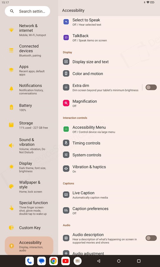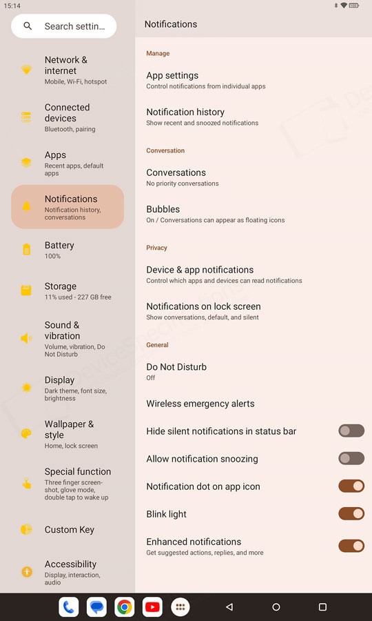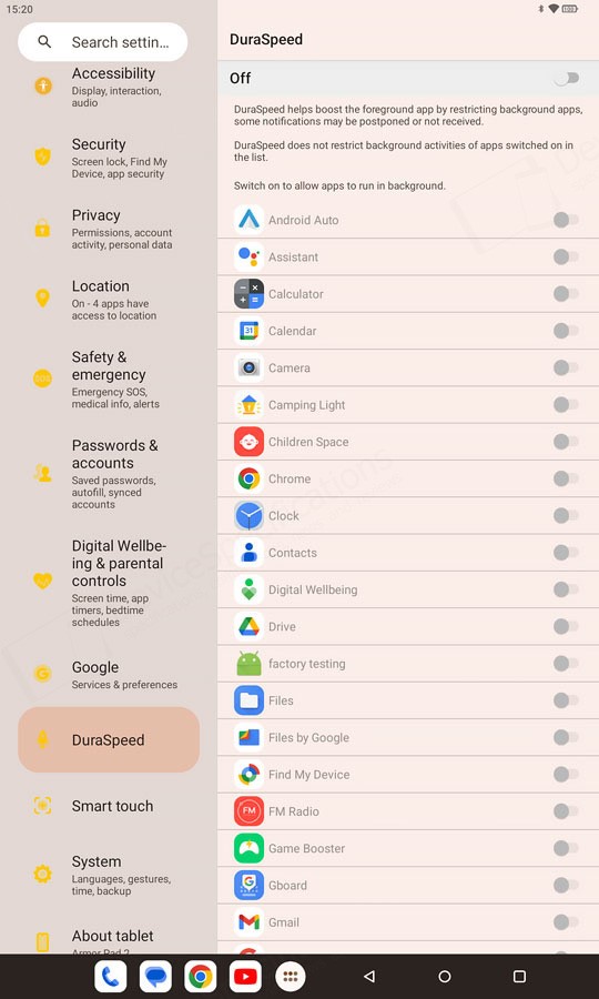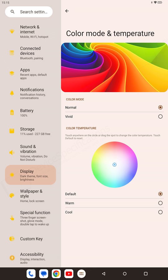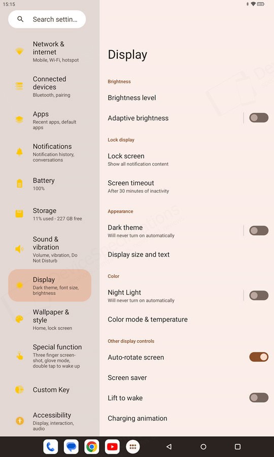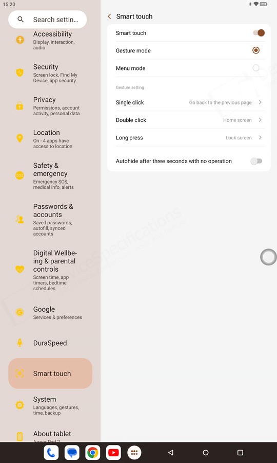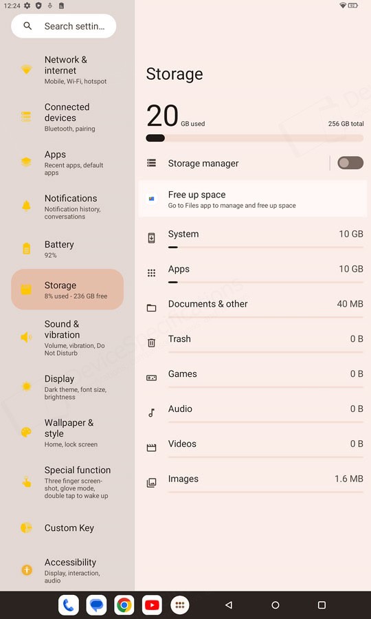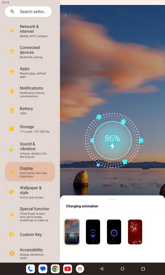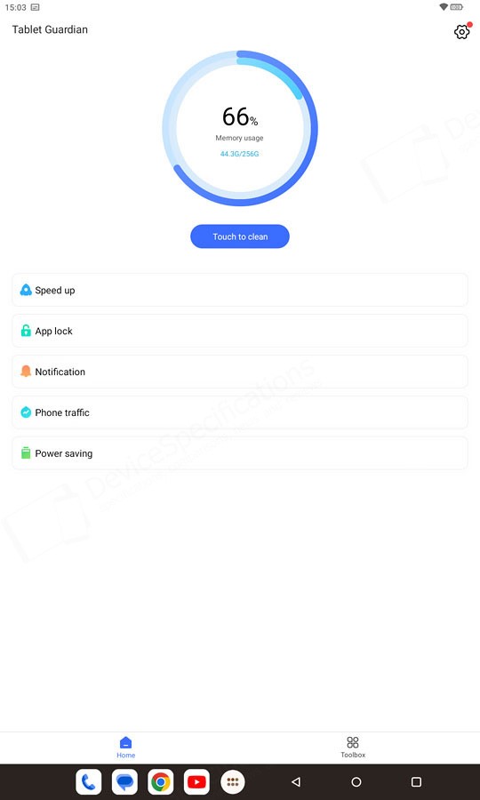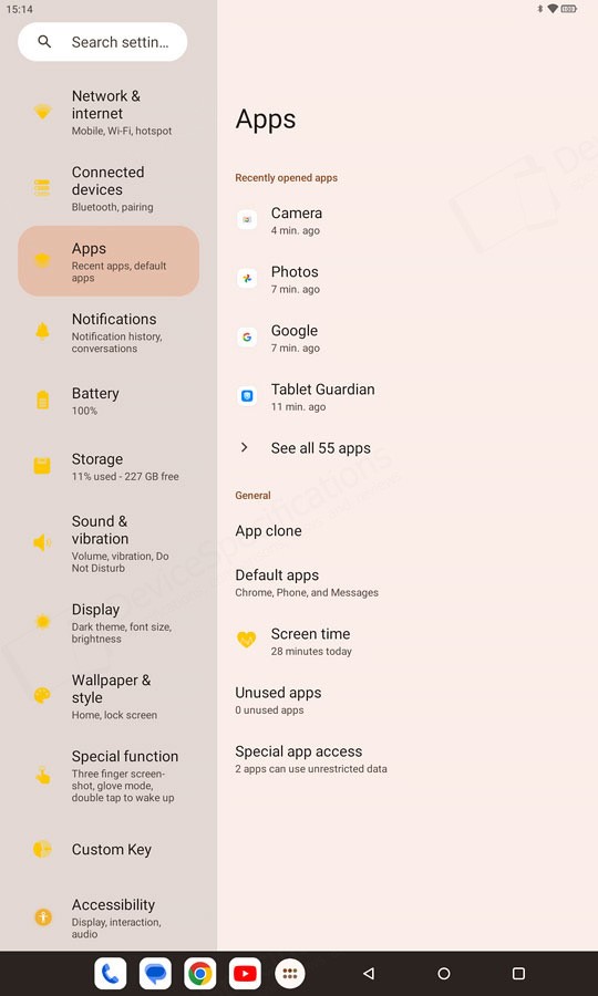 Ulefone Armor Pad 2 runs on stock Android 13 and some UI elements reflect the fact that this is a big-screen tablet and a re-designed accordingly. The Lock Screen is quite minimalistic. A big Clock widget appears in the middle of the screen with a small Date one, and some icons in the status bar area. As usual, the default screen unlock is by a swipe and this can be changed from the Security settings. The Home screen has a Google search bar on top with Lens and Voice search embedded. A Dite and Time widget is placed in the upper half of the screen, followed b y a row of favorite apps. At the very bottom of the screen, you see the docked row of apps and the virtual navigation bar. If you choose onscreen gesture navigation, these virtual buttons simply disappear. Desktop shortcuts are supported and Google Discover is on by default. There's no option to switch it off. There's an app drawer listing all applications on one page in alphabetic order with an app search bar and a row of the most recently used applications on top.