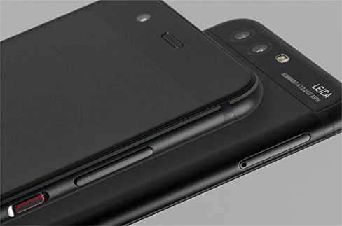 Huawei P10 impresses with its super-compact body made entirely of aluminum alloy. Carved out from a single slab of metal, the device incorporates an arched antenna bands design, which is one of the most stylish ones we've seen. Having in mind that our unit is graphite black, the antenna bands beautifully merge with the colour and are almost invisible. The back is sandblasted for a fine matte finish that is resistant to smudges. The rear edges are smooth and curved, while the front ones are chamfered and slightly glossy for a nice contrasting touch. They tightly encompass the display unit, which is covered with a 2.5D curved glass. All this creates the feeling that you hold one solidly crafted piece of fine machinery. With the exception of the Xiaomi Mi 5 and Vifocal, which are 69.2 and 69 mm wide, respectively, with its width of 69.3 mm, Huawei P10 is one of the narrowest smartphones on the market. The height of the device measures 145.3 mm, which is an average value for its size class, where the lowest height value is 139 mm (Meizu MX3) and the top one is 149.36 (Smartisan M1). Following Samsung Galaxy S6, which is 6.8 mm deep, the P10 is the second thinnest smartphone with a 5.1-inch display on the market. Somehow, it manages to pack in its extremely thin body a 3200 mAh battery, while the Galaxy S6 has a 2550 mAh accumulator, for example. Among the smartphones with a 5-5.15-inch display and a 3200 mAh battery is one of the lightest (145 g) models and is definitely the thinnest one.