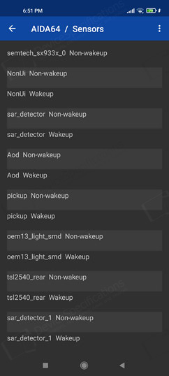 The Xiaomi 11 Lite 5G NE (Xiaomi 2109119DG) arrives with a solid sensor hub comprising an ultrasonic distance sensor, magnetic field, orientation, gyroscope, gravity, linear acceleration, rotation vector, game rotation vector, geomagnetic rotation vector, significant motion, step detector, step counter, uncalibrated gyroscope, magnetic field detector, and others.The capacitive fingerprint sensor is embedded in the Power button placed on the right frame and can be activated either by touching or by pressing - the default one is by touch. Xiaomi has opted for a FingerPrintCards/Goodix sensor. It is extremely fast and accurate. In addition to using it for biometric identification, you can also apply various functions to it such as associating it with a payment authentification, privacy password, app lock.