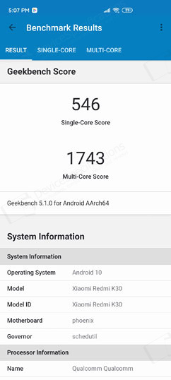 Xiaomi Redmi K30 4G | 1743 (Qualcomm Snapdragon 730G (SM7150-AB), cores: 8) |