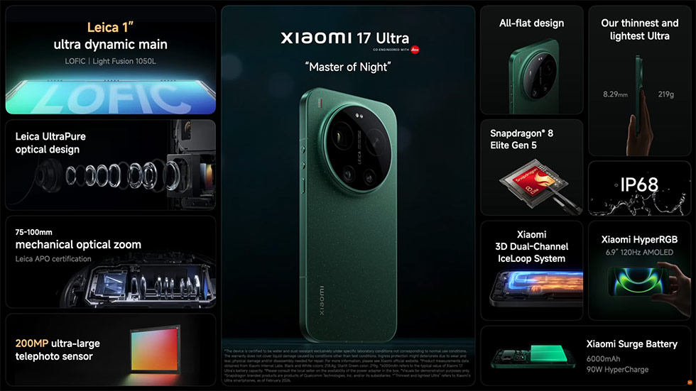 Performance hardware is equally aggressive. The Snapdragon 8 Elite Gen 5, paired with up to 16 GB of LPDDR5X RAM and up to 1 TB of UFS 4.1 storage, positions the 17 Ultra as a device meant to handle heavy imaging workloads, gaming, and on‑device AI without breaking a sweat. The 6000 mAh battery supports 90W wired, 50W wireless, and 22.5W reverse charging, and suggest Xiaomi wants users to feel like battery anxiety is a thing of the past.
